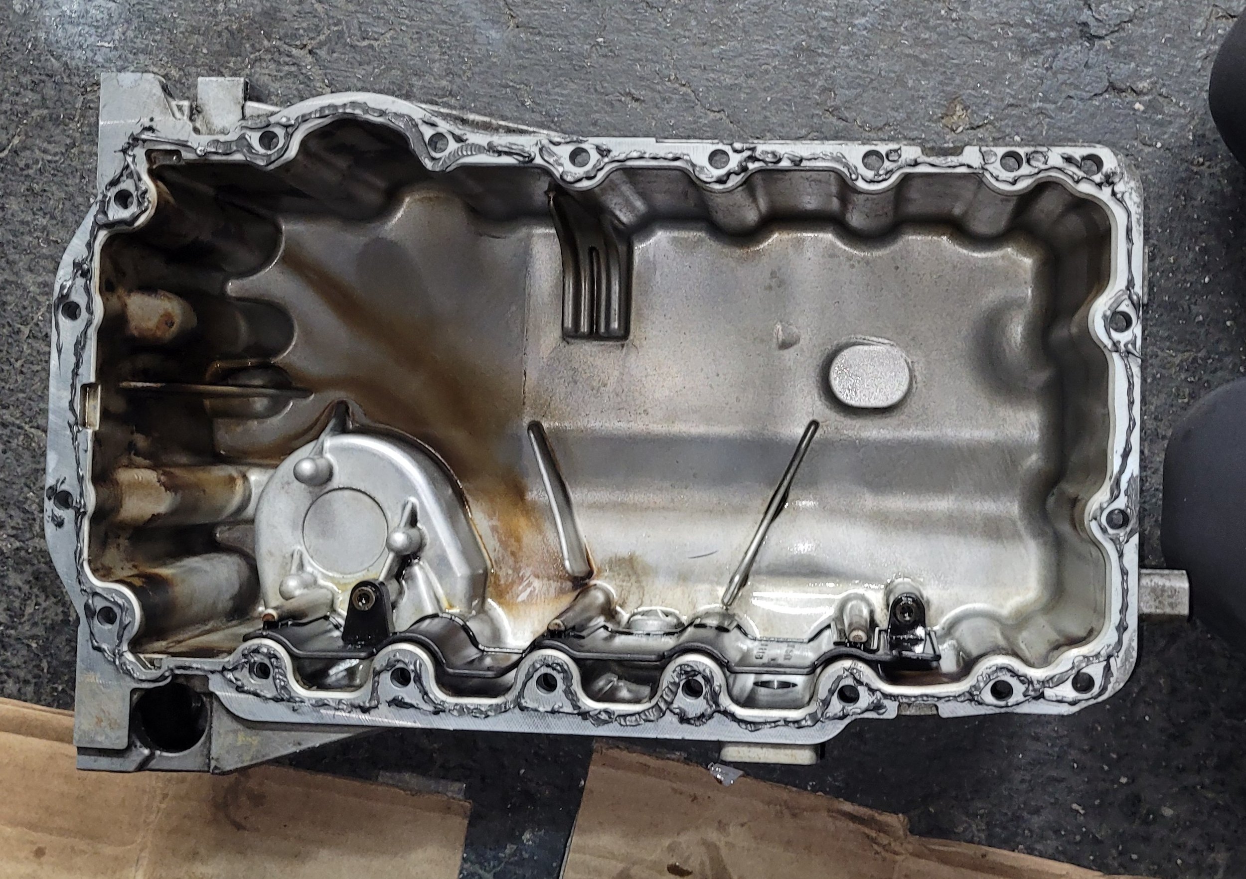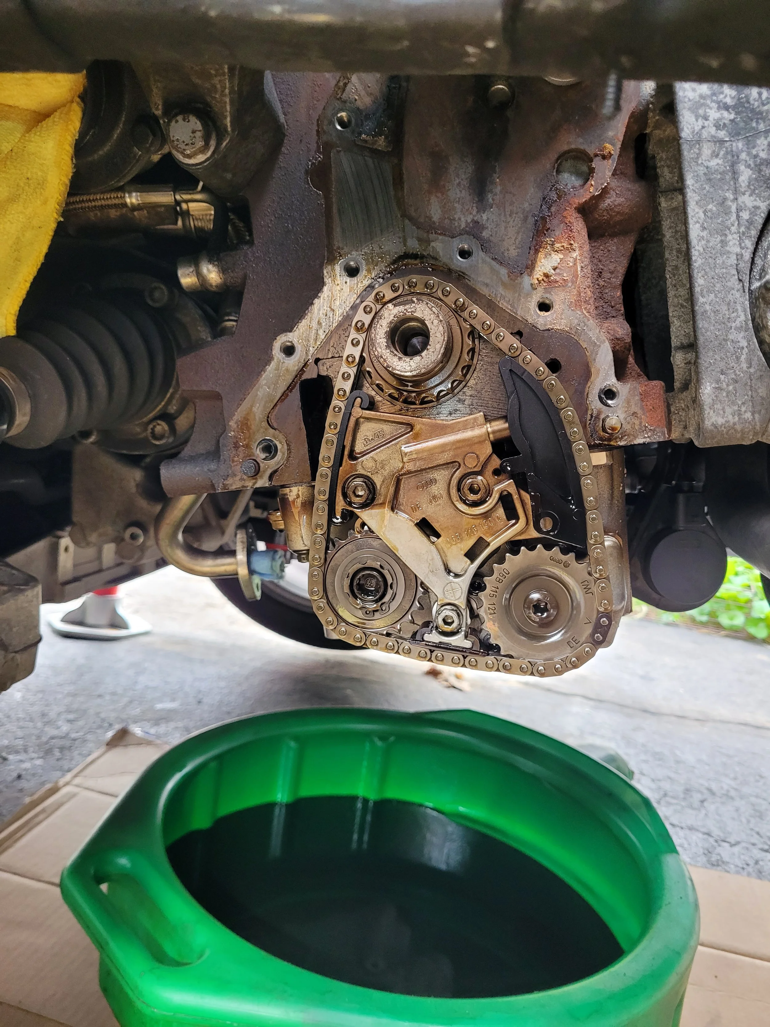 Disassembling the oil pan, crank gear, timing belt, and surrounding components is required to access the balance‑shaft sprocket so it made sense to refresh everything. I gave the oil pan a thorough cleaning and replaced the timing belt and water pump preemptively.
