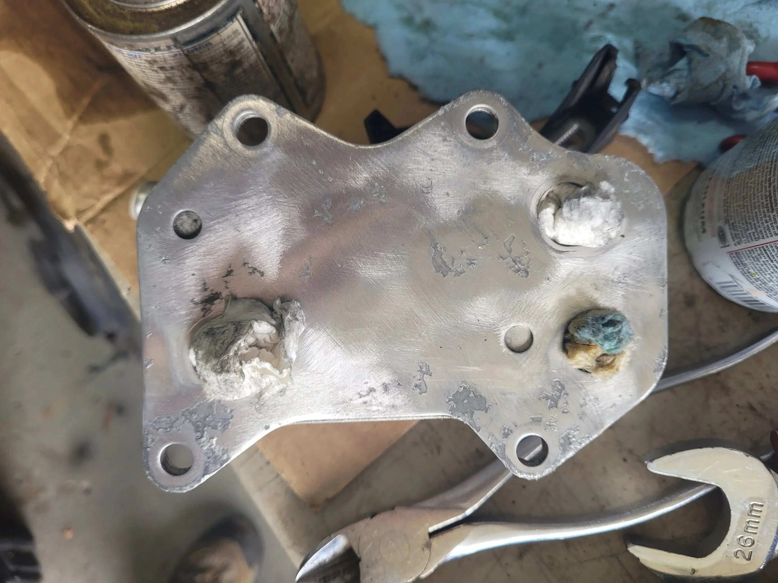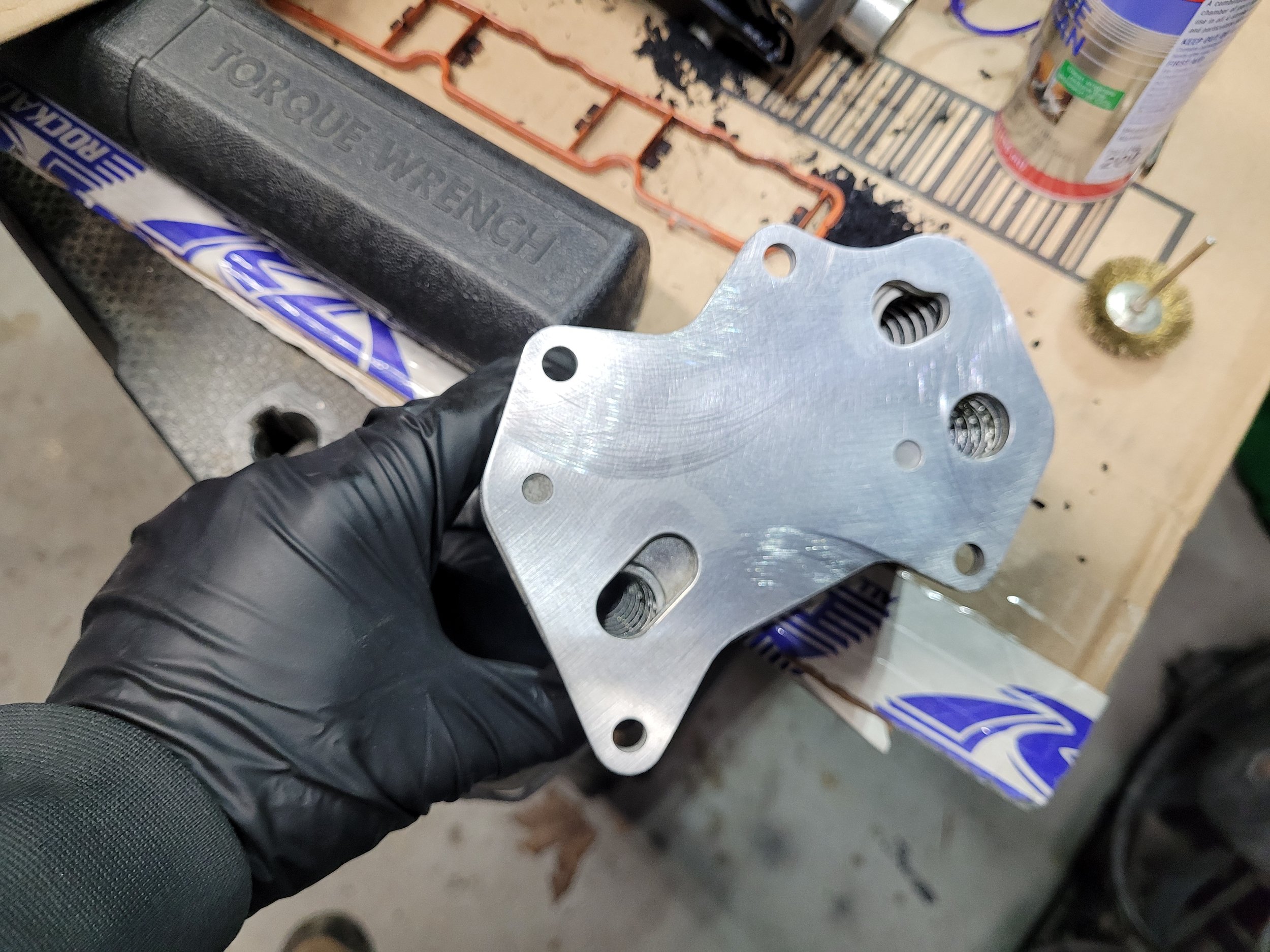 While working, I noticed the oil cooler had significant pitting, which raised concerns about the seal quality when reinstalled. To ensure a proper seal, I carefully wet-lapped the face until it was smooth and even.