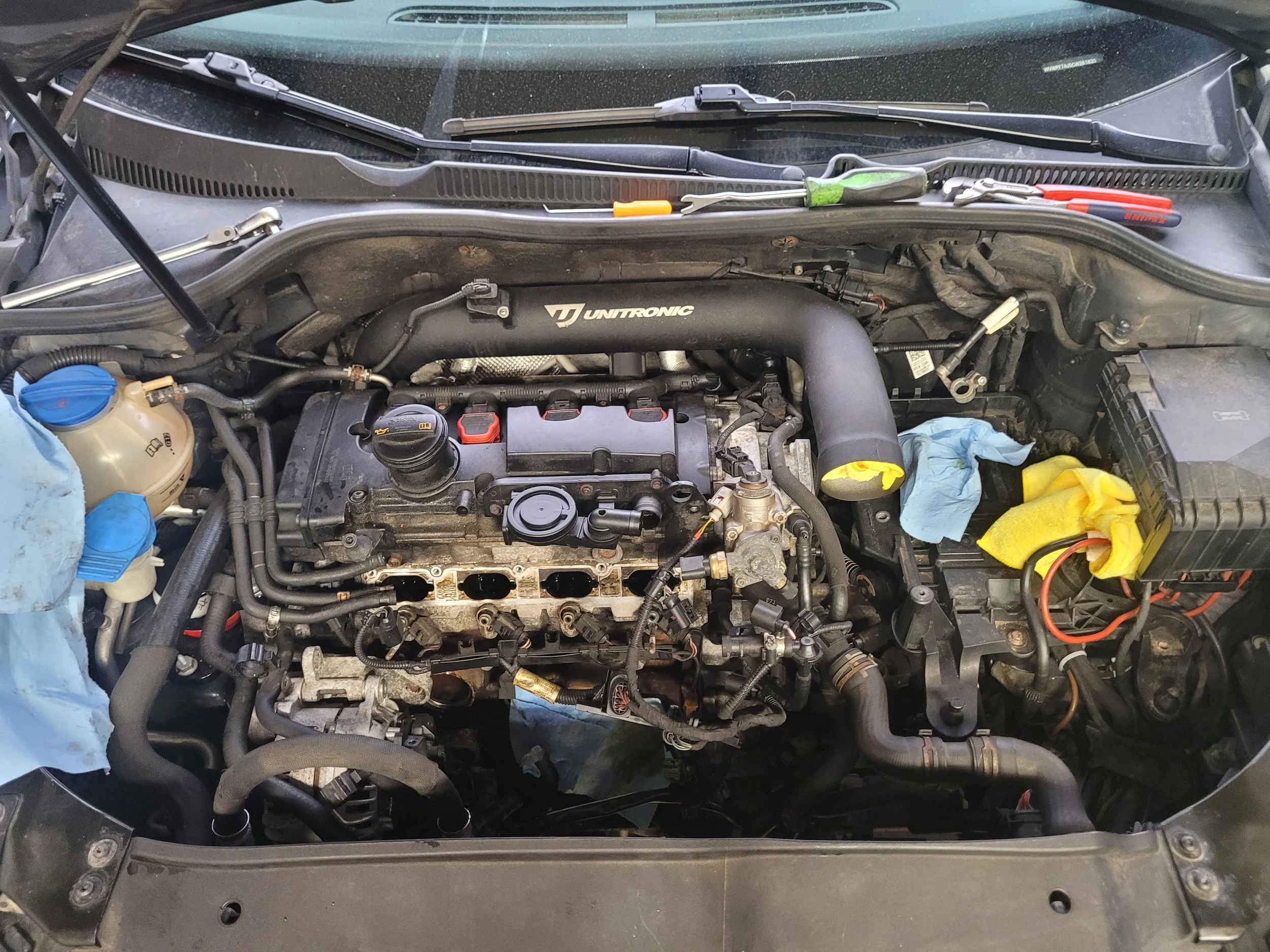 To address buildup common in direct‑injection engines, I performed a full carbon cleaning of the intake manifold and intake valves. This restored airflow, improved throttle response, and gave me a deeper appreciation for the mechanical nuances of the EA113 platform.