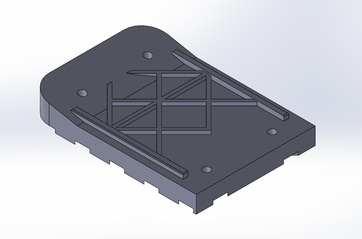 Built an initial CAD model that replicated the OEM geometry while integrating tread features and a toe‑off grip pattern to improve walking stability.