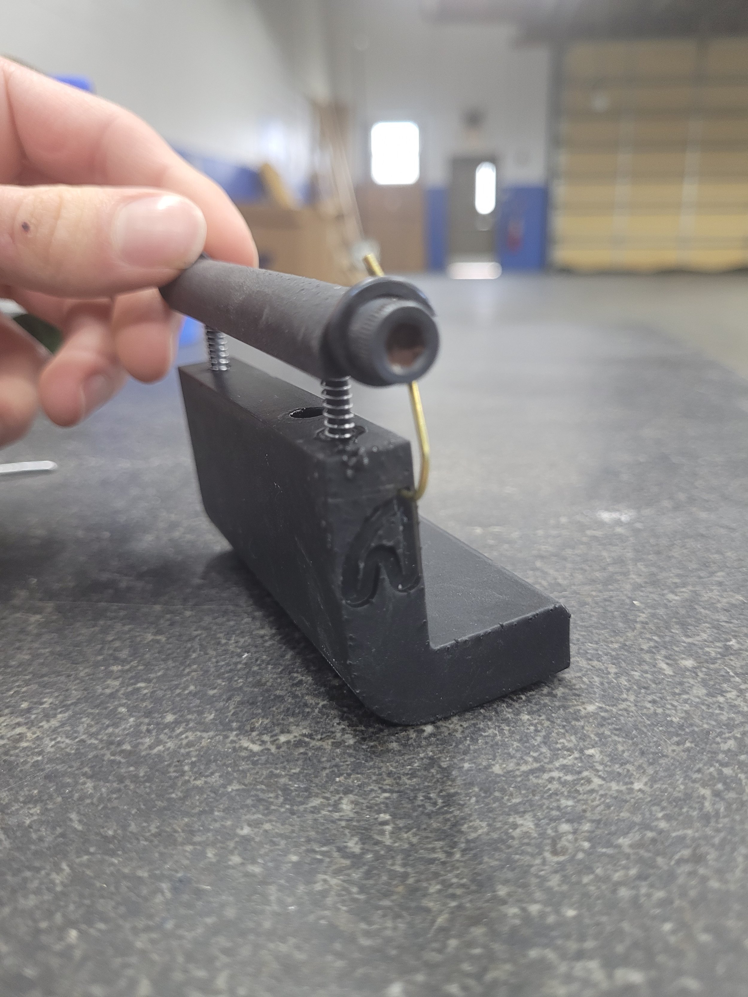 Another concept I explored was a push‑push mechanism that used spring tension to extend the sandpaper. In practice, it never deployed reliably, the metal wire couldn’t survive the required bend radius and plastically deformed, leaving the mechanism stuck in the lower position or jumping off its track. The spring tension itself was promising, especially as a way to warm up one’s hands before climbing.